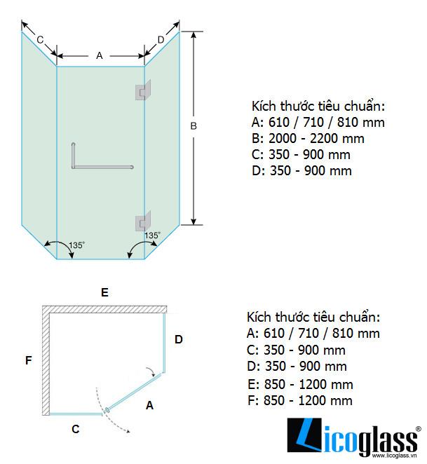 Tại sao gọi là vách tắm kính cửa mở quay 135 độ: Vách tắm kính 135 độ là bộ vách tắm kính được tạo từ 3 tấm kính kết hợp với nhau tạo thành 1 góc 135 độ.