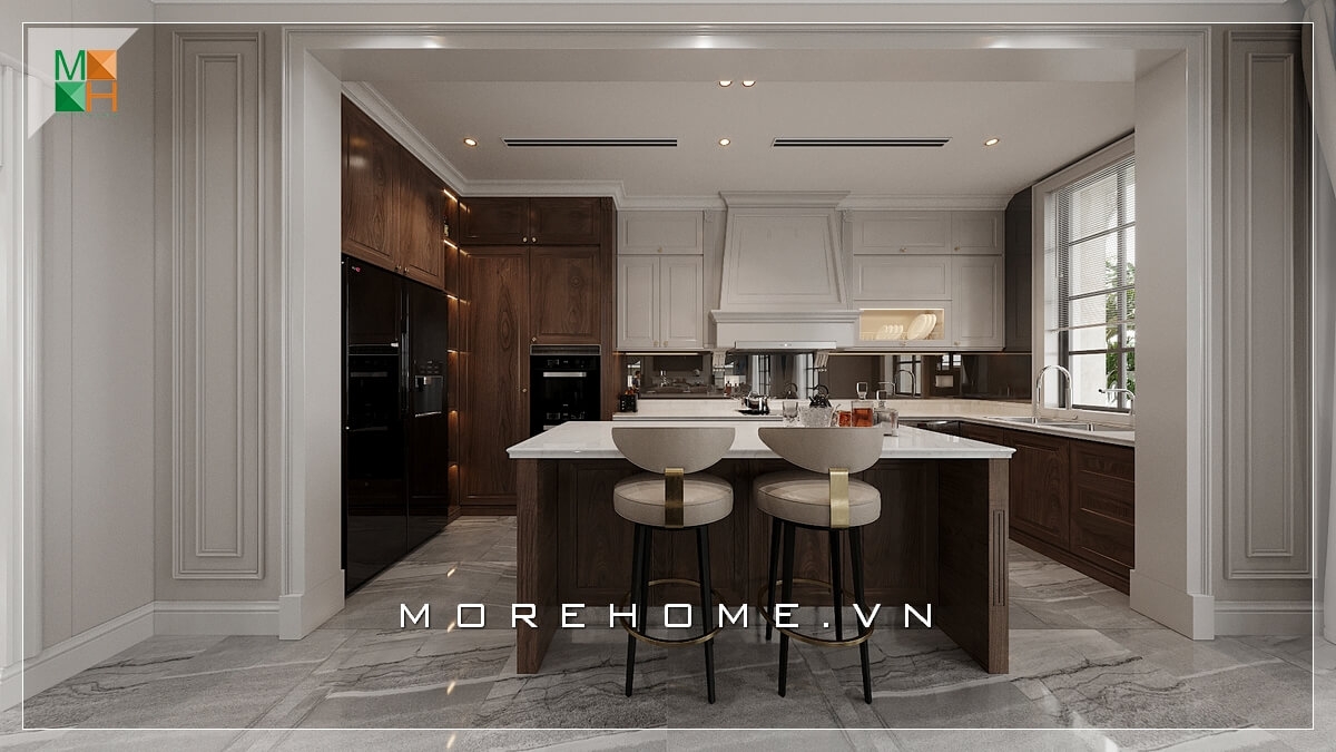 Ấn tượng với mẫu thiết kế phòng bếp sang trọng, đẳng cấp cho chung cư, nhà phố, biệt thự, mang phong cách hiện đại pha chút cổ điển truyền thống