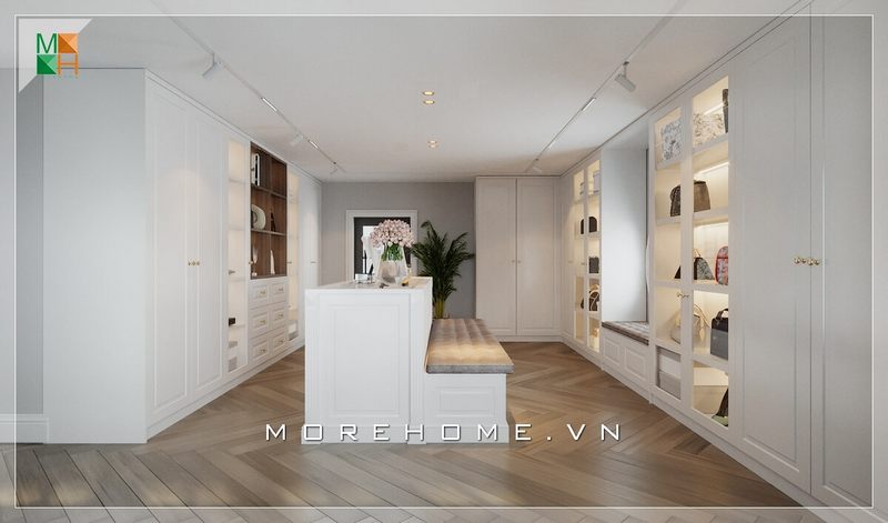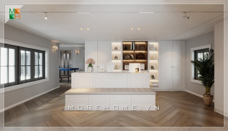 Thiết kế biệt thự, nhà phố có một không gian để đồ sang trọng, cao cấp với hệ thống kệ tủ đựng hiện đại tiện lợi bố trí tinh tế, đầy hấp dẫn.